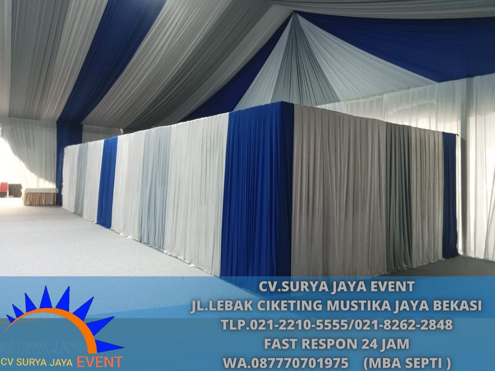 • Panggung,backdrop,tirai,gubukan,kotak angpao,podium,partisi,