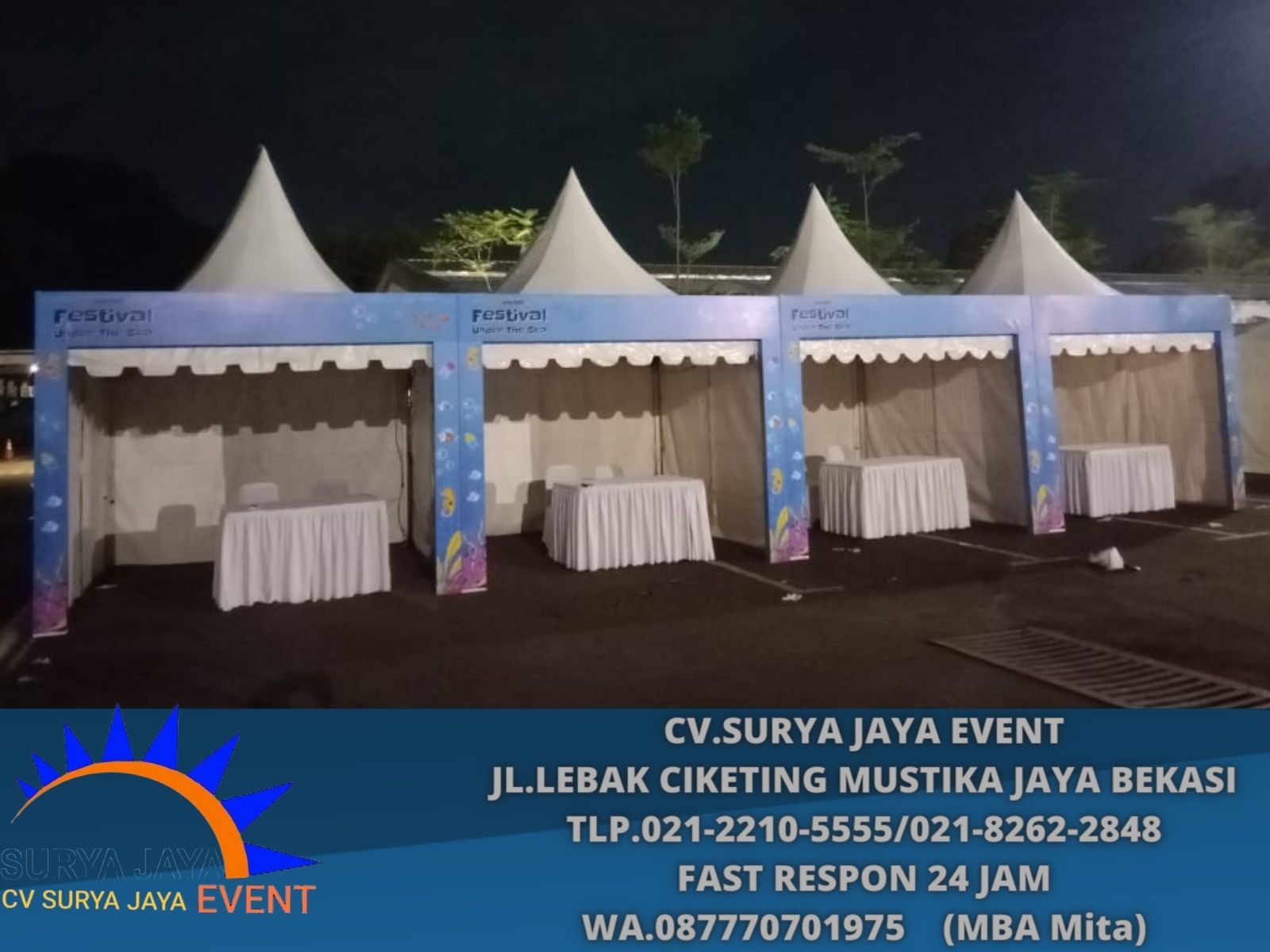 Rental Tenda Bazar Untuk Acara Pemasaran Panyileken Bandung. CV. SURYA JAYA EVENT merupakan salah satu pusat sewa alat pesta terbaik bekasi, jasa sewa ini menyediakan berbagai kebutuhan event lengkap dengan produk-produk yang sangat terjamin akan kualitasnya, terjaga dari segi kebersihan, kerapian, dan keamanannya.