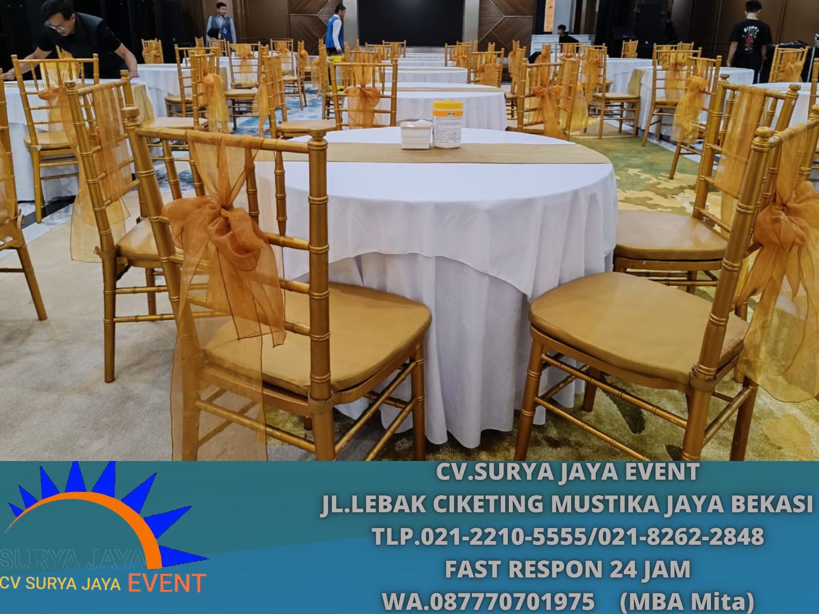 Penyewaan Kursi Tiffany Gold Makasar Jakart Timur. Mencari kursi tiffany untuk kebutuhan acara?. Sewa dan gunakan produk yang tersedia dijasa sewa CV.SURYA JAYA EVENT aja!. Pastinya sudah sangat terjamin, aman, produk berkualitas, terawat, terjaga dengan baik.