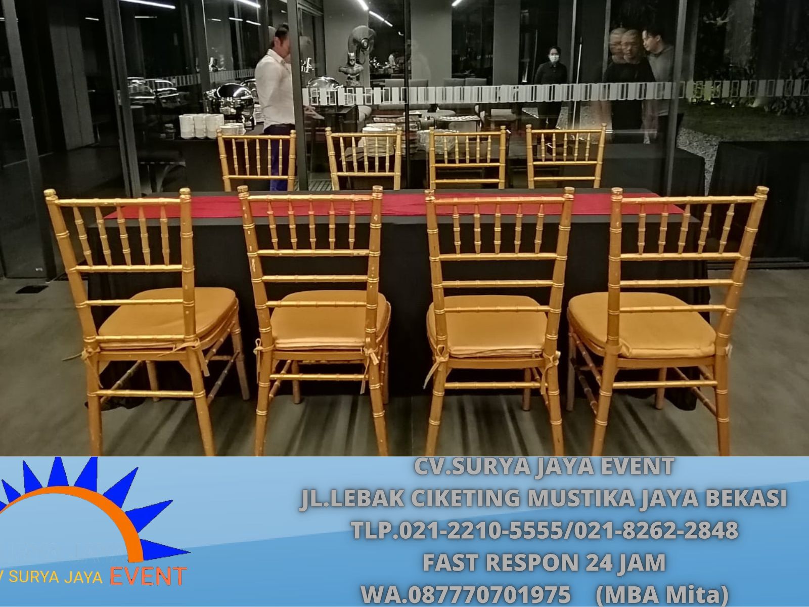 Sewa Kursi Tiffany Gold Dan Meja Kotak 120x60cm Area Jakarta. Kami siap memenuhi kebutuhan acara anda dengan memberikan produk terbaik. Tidak perlu khawatir, karena jasa sewa kami siap melayani berbagai daerah jabodetabek dan daerah lainnya.