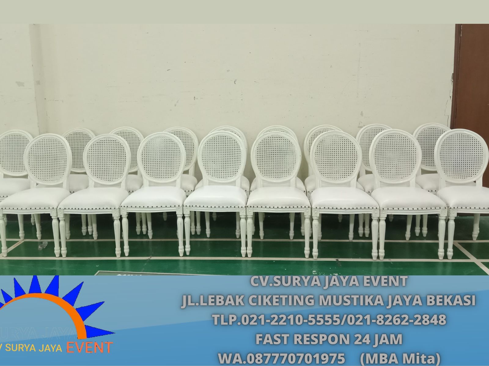 Vendor Sewa Kursi Raffles Putih Terbaik di Jakarta. CV.SURYA JAYA EVENT selalu siap membantu memberikan produk-produk terbaik untuk melengkapi kebutuhan acara anda, siap kirim juga setting langsung ketempat yang ditentukan dengan aman, cepat, tepat waktu, dibantu oleh kru profesional ahli yang berpengalaman.