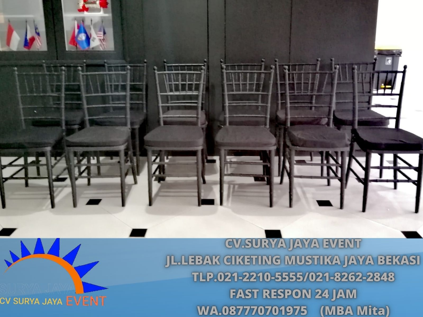 Rental Kursi Kayu Tiffany Hitam Plus Bantal duduk di Jakarta. CV.SURYA JAYA EVENT merupakan tempat penyewaan kebutuhan alat pesta lengkap, dan juga terpercaya. Tersedia berbagai pilihan produk-produk yang dapat digunakan untuk melengkapi acara anda.
