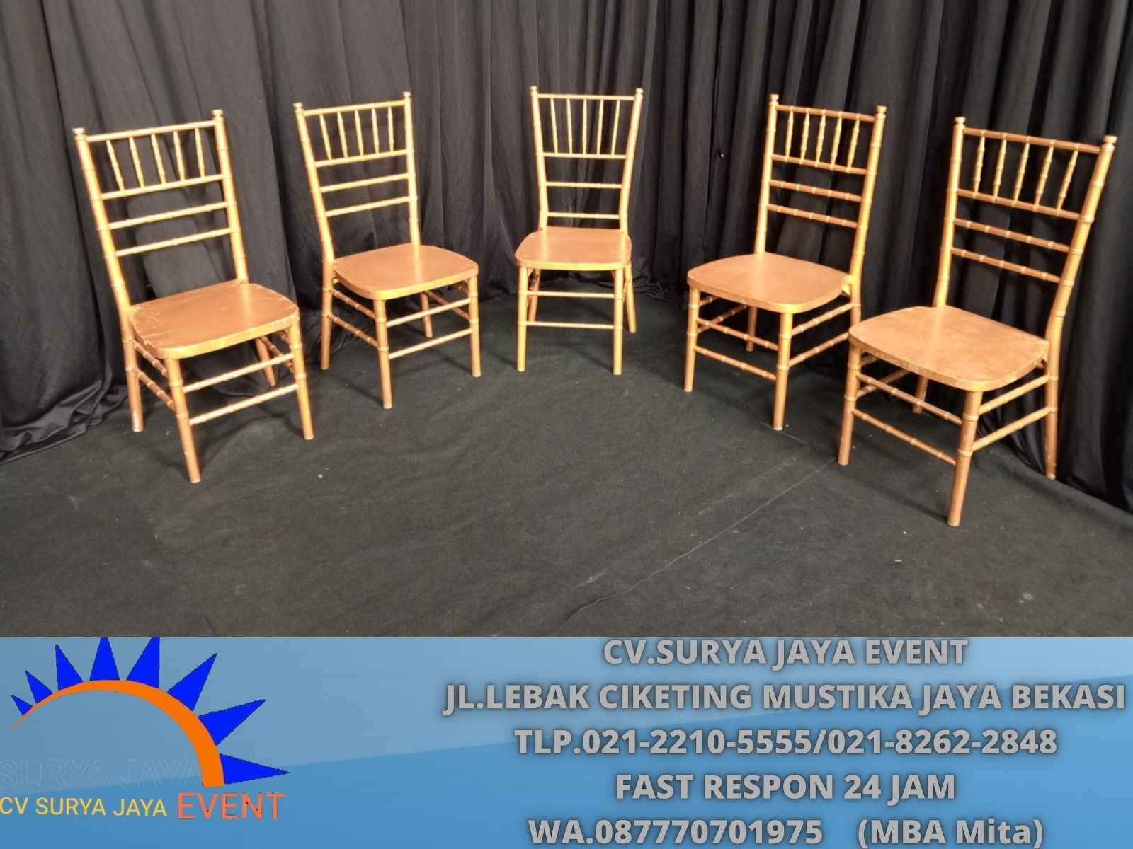 Spesialis Rental Kursi Tiffany VIP Gold Bahan Kayu Jati Depok. Jasa kami (CV.SURYA JAYA EVENT) ingin menawarkan anda beberapa produk alat pesta. Pastinya tersedia dengan pilihan model yang dapat disesuaikan dengan keinginan custemer.
