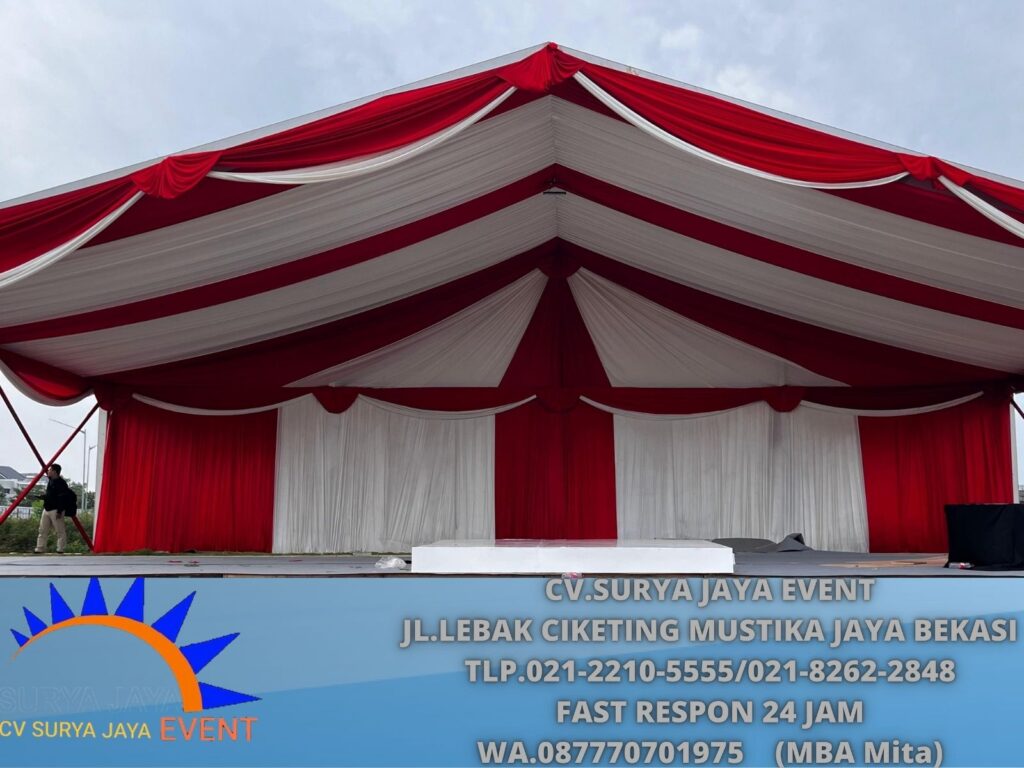 Pusat Sewa Tenda Hanggar Lengkap Dekorasi Serut Merah Putih di Bekasi