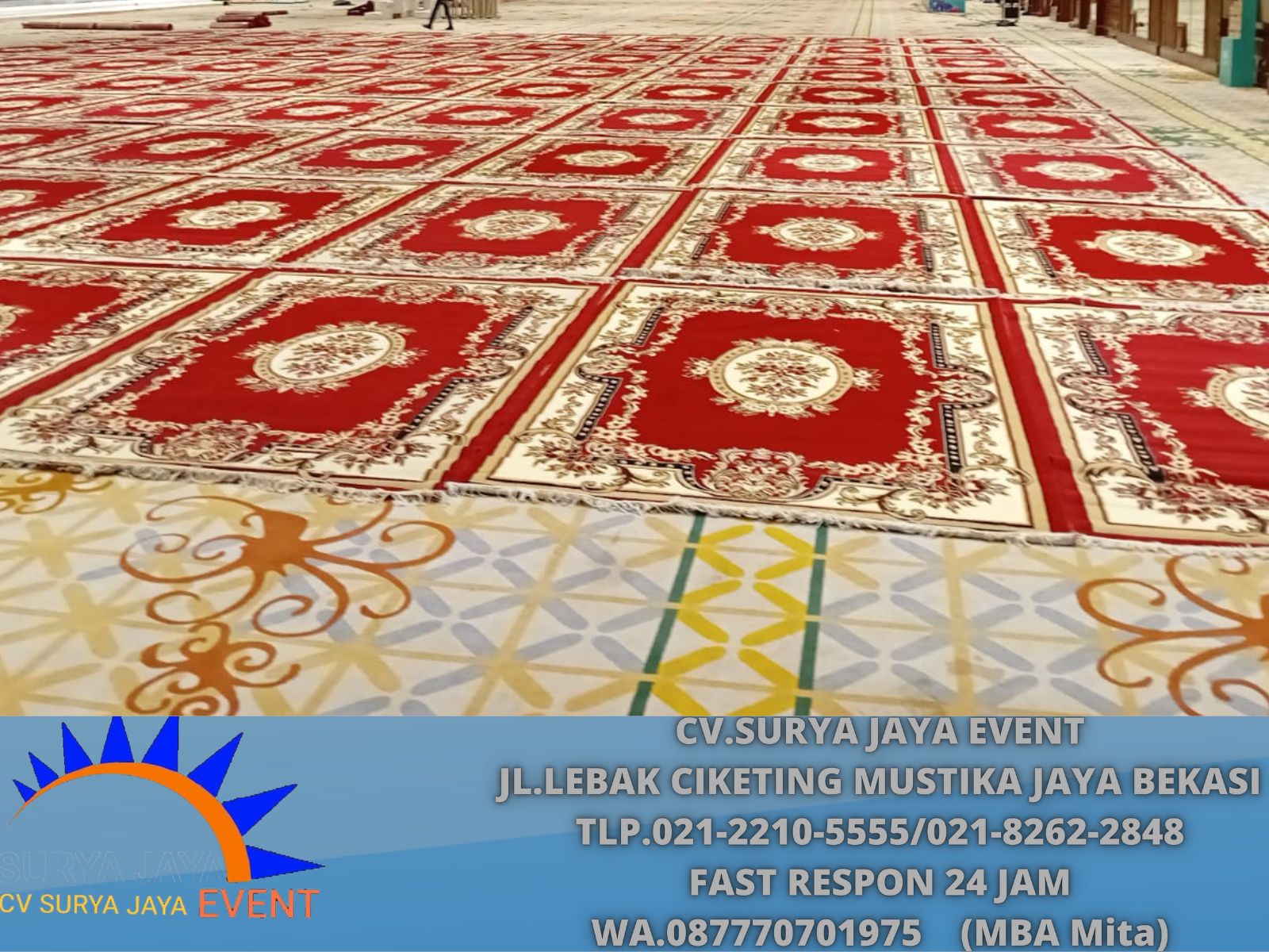 Untuk anda yang ingin Sewa Permadani Karpet Ala Turki Warna Merah Area Jakarta, bisa mempercayakan langsung pada jasa (CV.SURYA JAYA EVENT).
